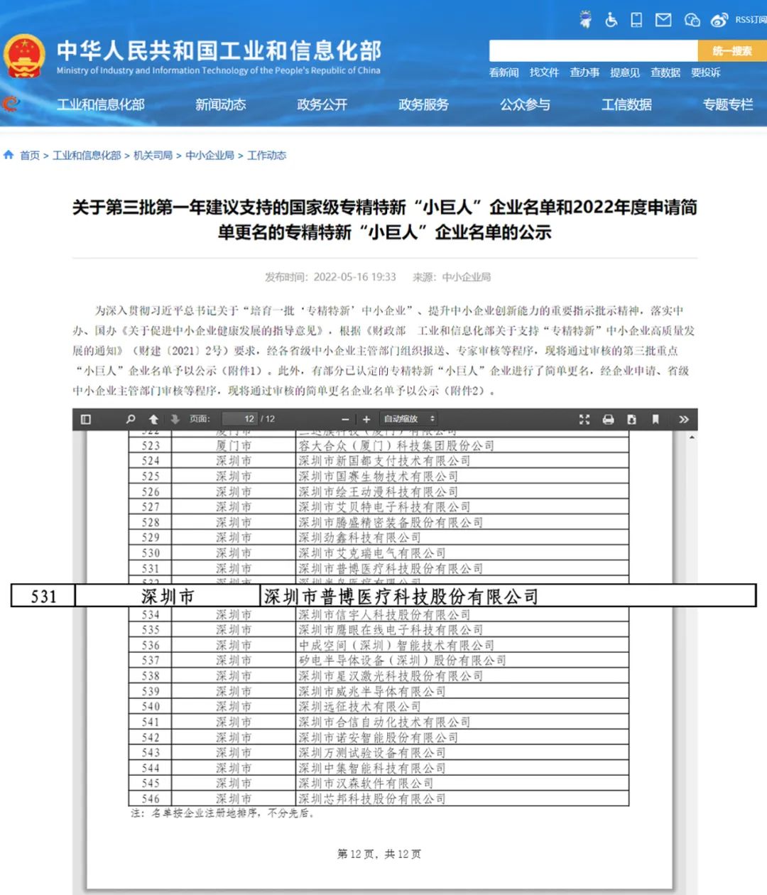 刚刚,,,,,,国家工信部官网完成第三批国家级“专精特新”重点“小巨人”企业名单全网公示,,,,,,天下共546家企业上榜,,,,,,深圳企业23家。。。。。深圳急危重症领域的准独角兽,,,,,,J9集团(china)公司官网医疗乐成入选。。。。。